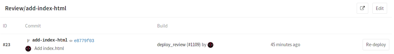 - The commit information of the last deployment such as who committed, to what branch and the Git SHA of the commit