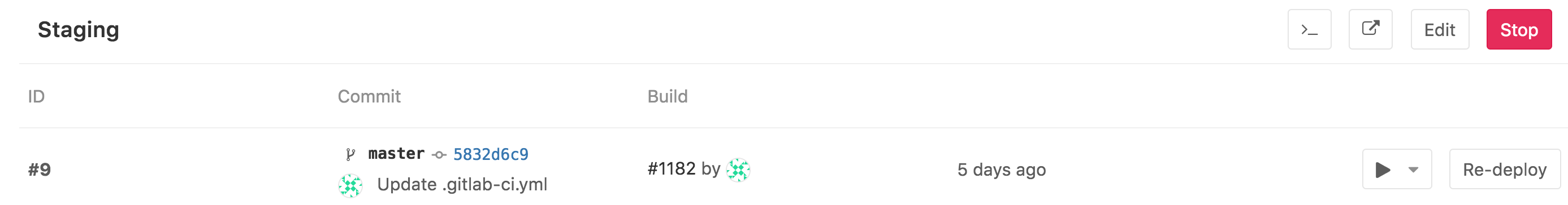 .gitlab-ci.ymlis properly configured will show up in the "Environment" and "Last deployment" lists.